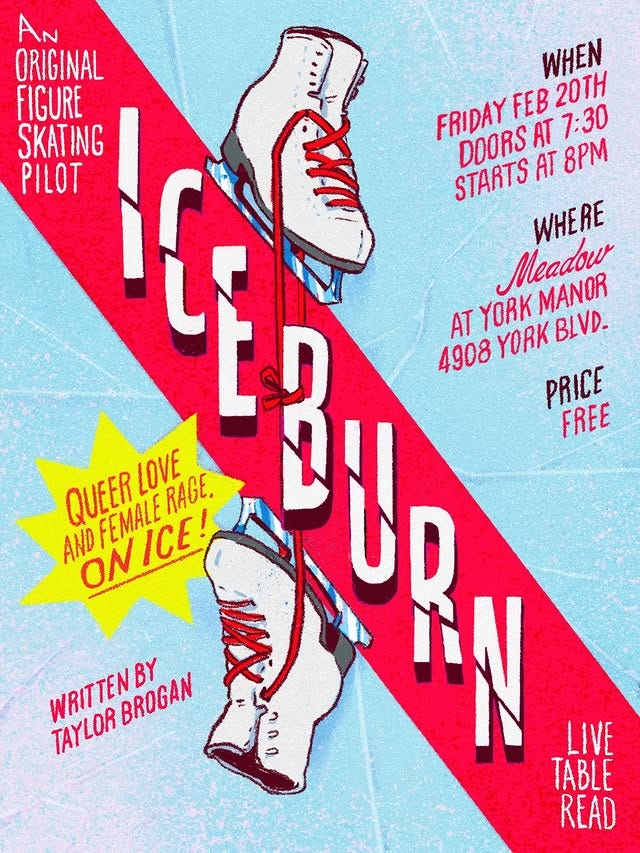 And if you’re in Los Angeles and looking for something to do on Friday night, check out this staged reading of the queer ice dance TV pilot Iceburn by Taylor Brogan.